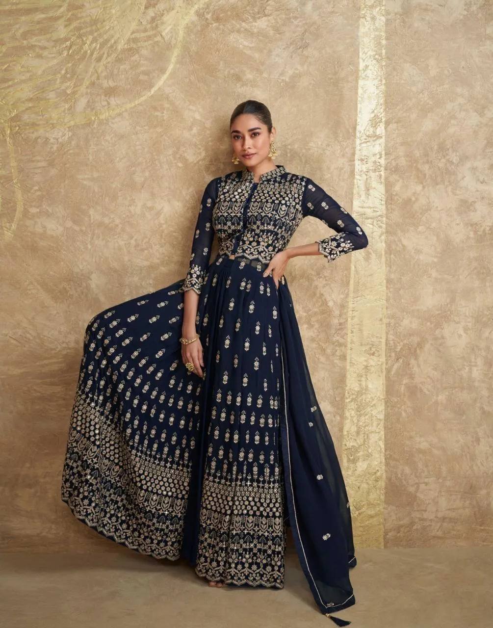 | Details | Premium Real Georgette (Heavy Embroidered Dress with Palazzo and Dupatta) |
