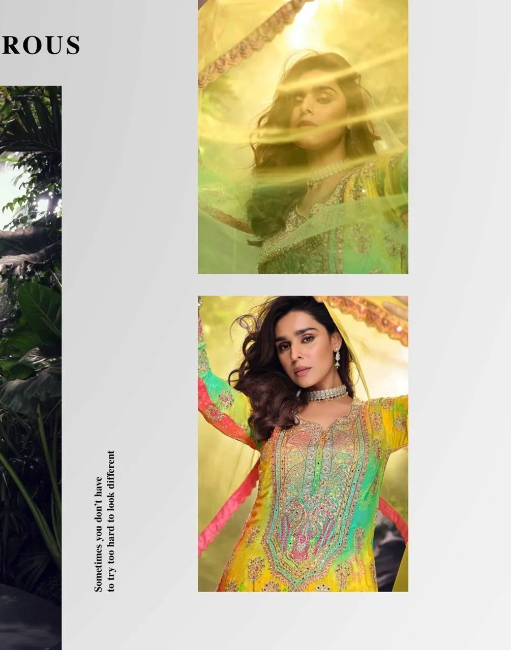 | Details | Premium Real Chinnon Silk (Heavy Look Embroidered Top with Hand Mirror Work, Embroidered Palazzo, Embroidered Net Dupatta) |