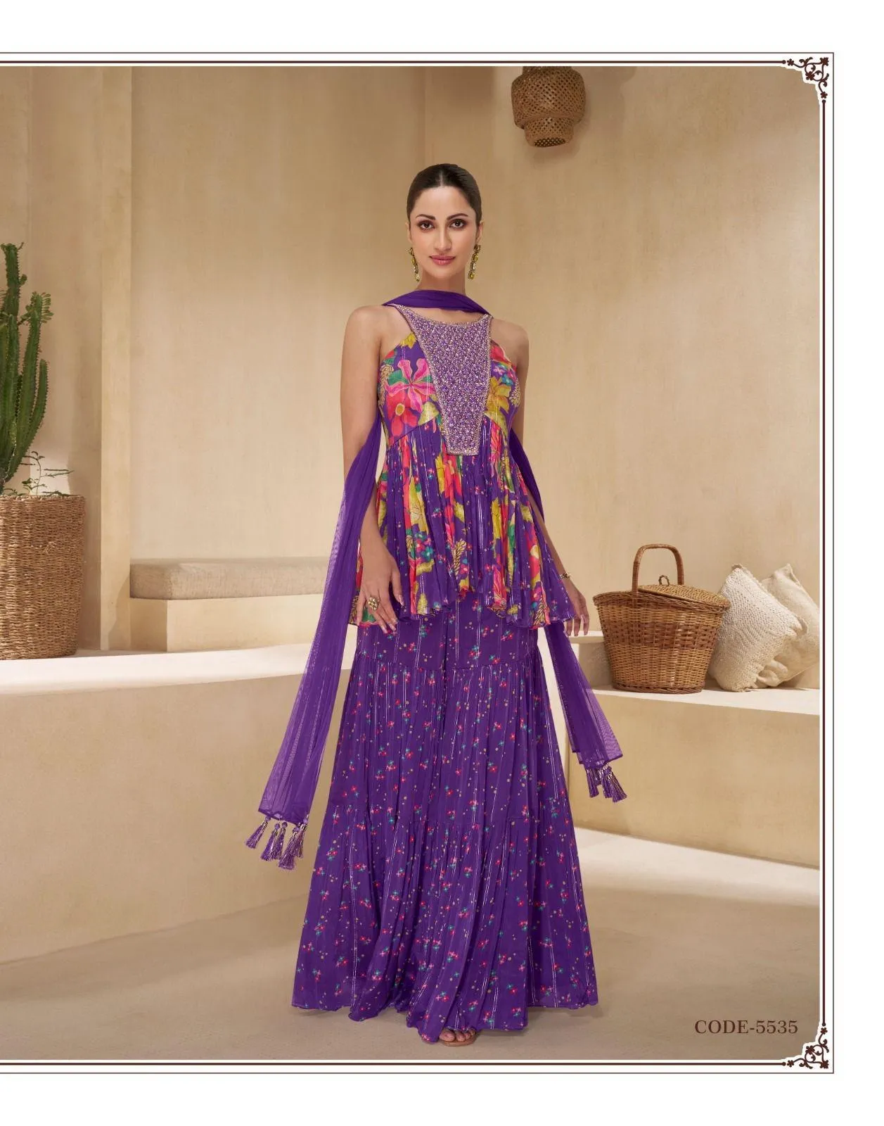| Details | Pure Muslin / Real Chinnon Silk / Pure Crep Silk (Sleeves Attached, Embroidered) |