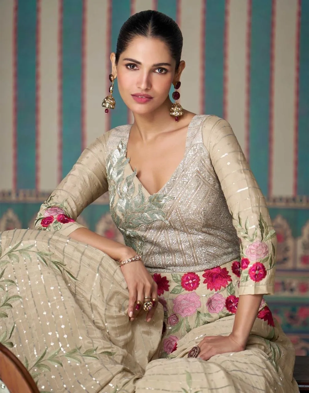 | Details | Premium Real Chinnon Silk / Premium Real Silk (Front and Back Embroidered with Cancan and Hand Tassels) |