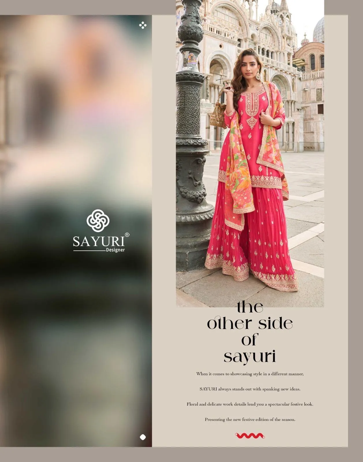 | Details | Premium Real Simar Silk / Viscos Jacquard Silk / Real Chinon Silk (Heavy festive look top with front and back embroidered sharara with digital embroidered dupatta) |