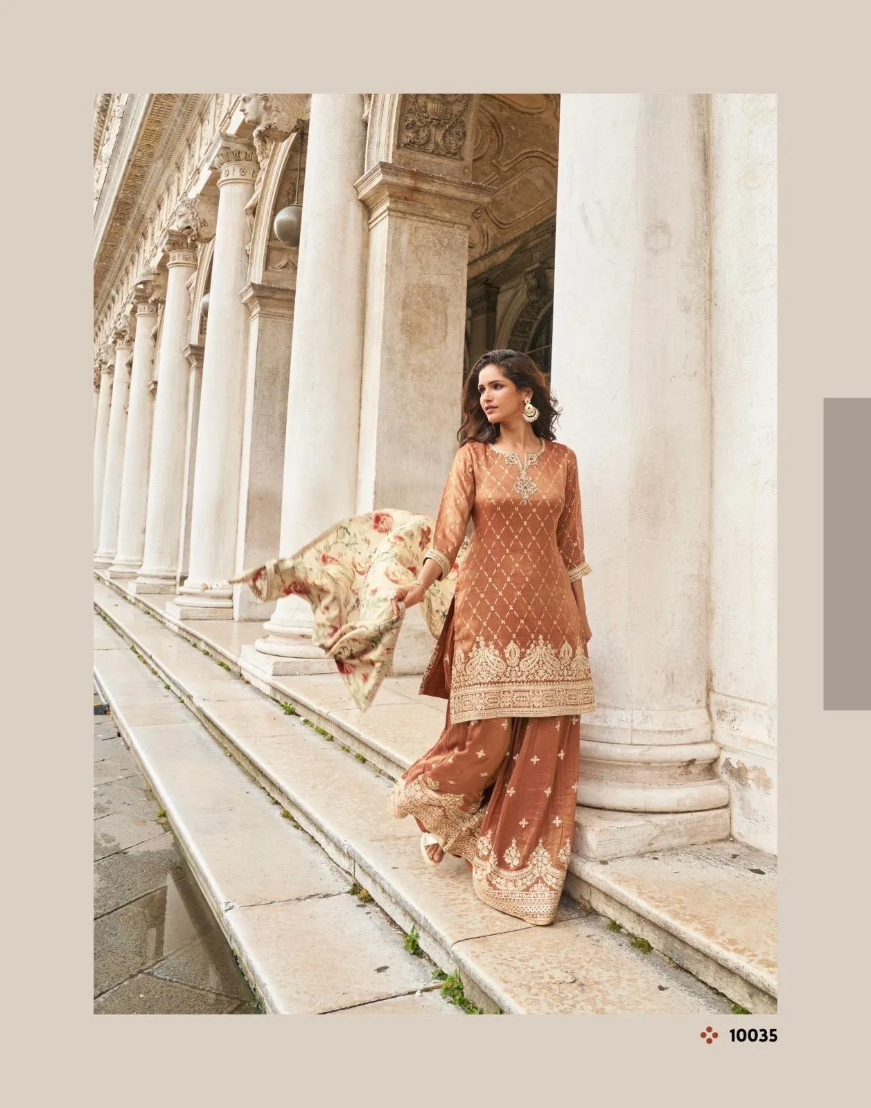 | Details | Premium Real Simar Silk / Viscos Jacquard Silk / Real Chinon Silk (Heavy festive look top with front and back embroidered sharara with digital embroidered dupatta) |