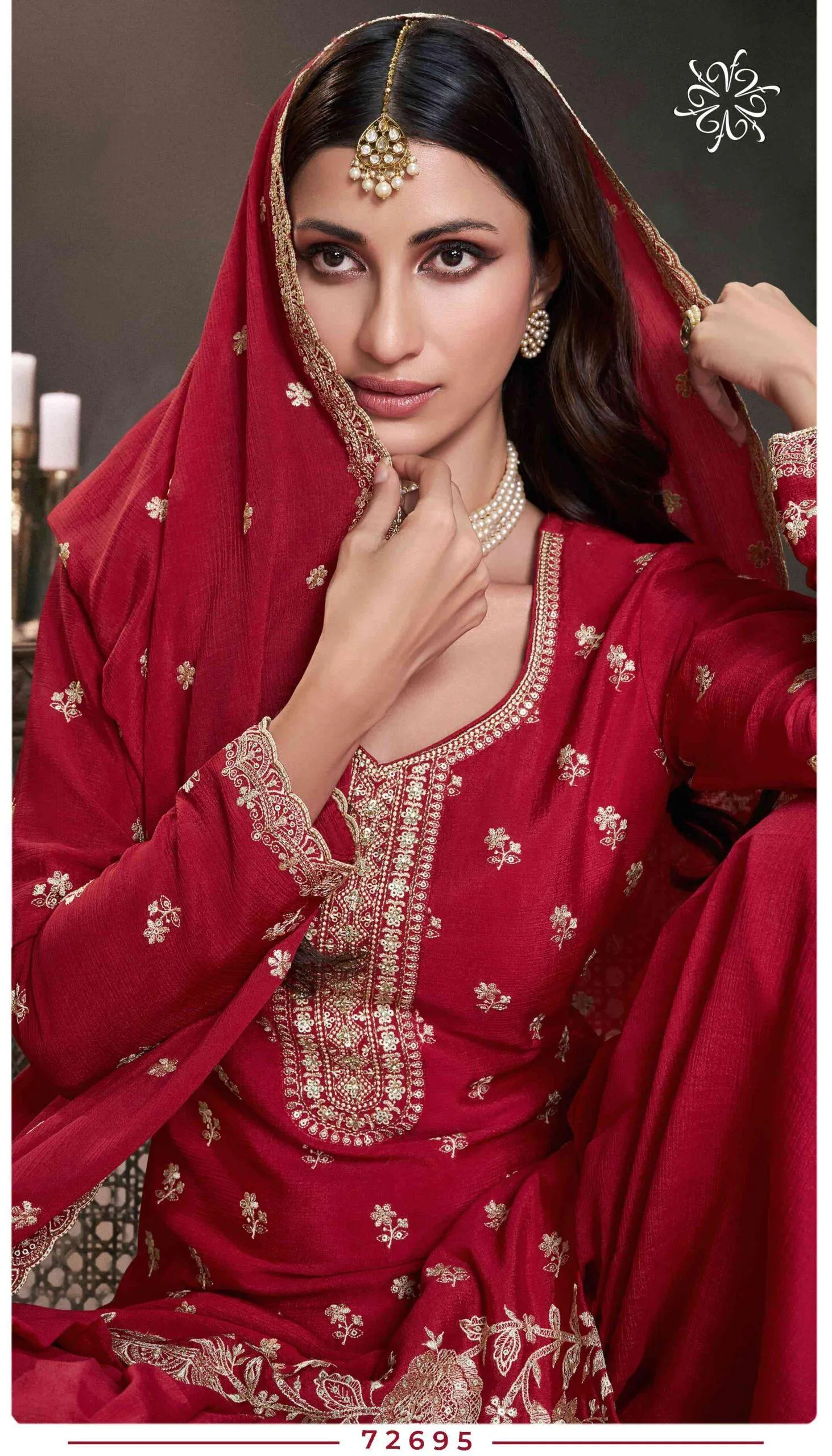 | Details | Designer Thread Embroidered Chinnon Top (Unstitched), Designer Thread Embroidered Sharara Bottom (Stitched), Designer Thread Embroidered Chinnon Dupatta |